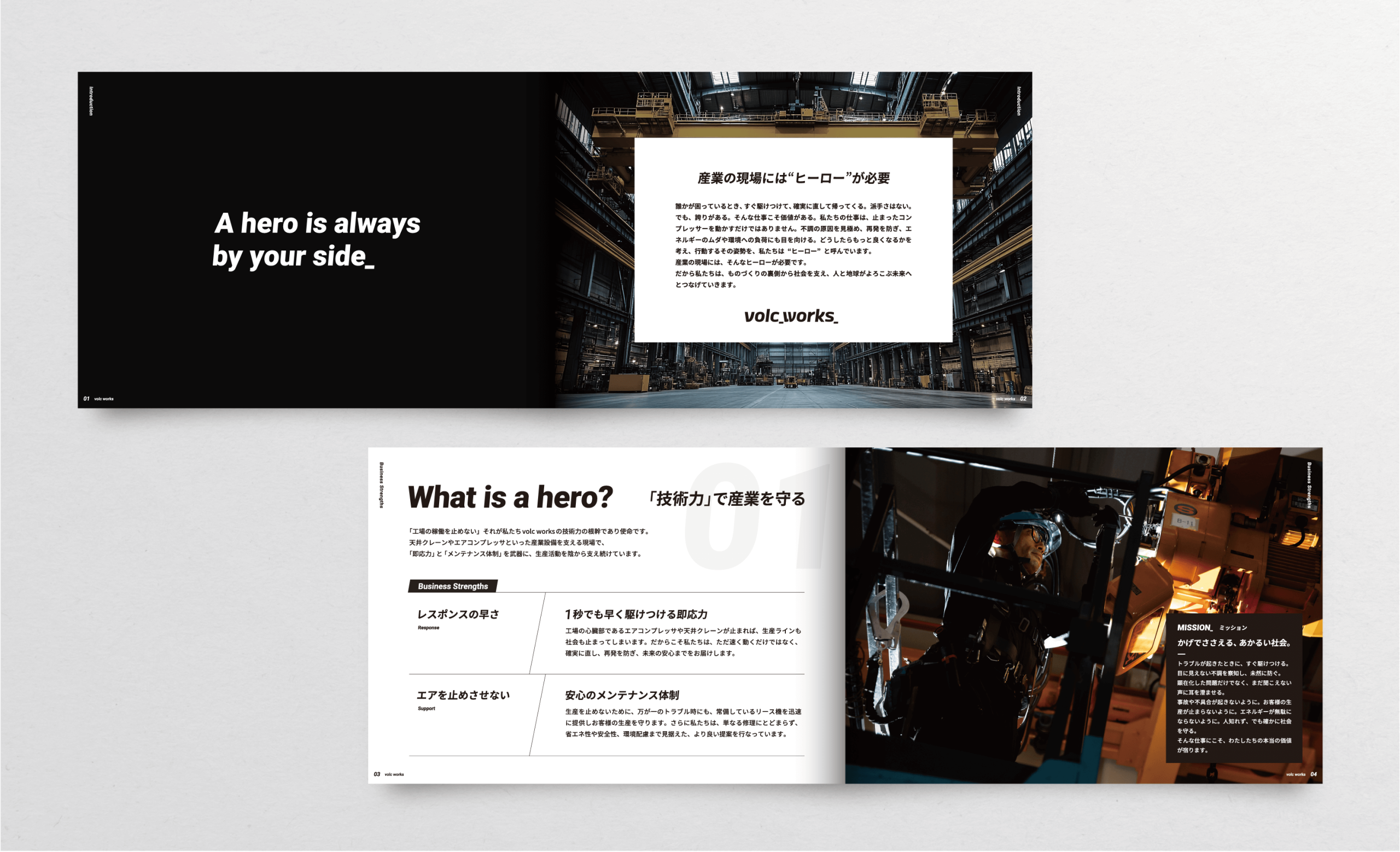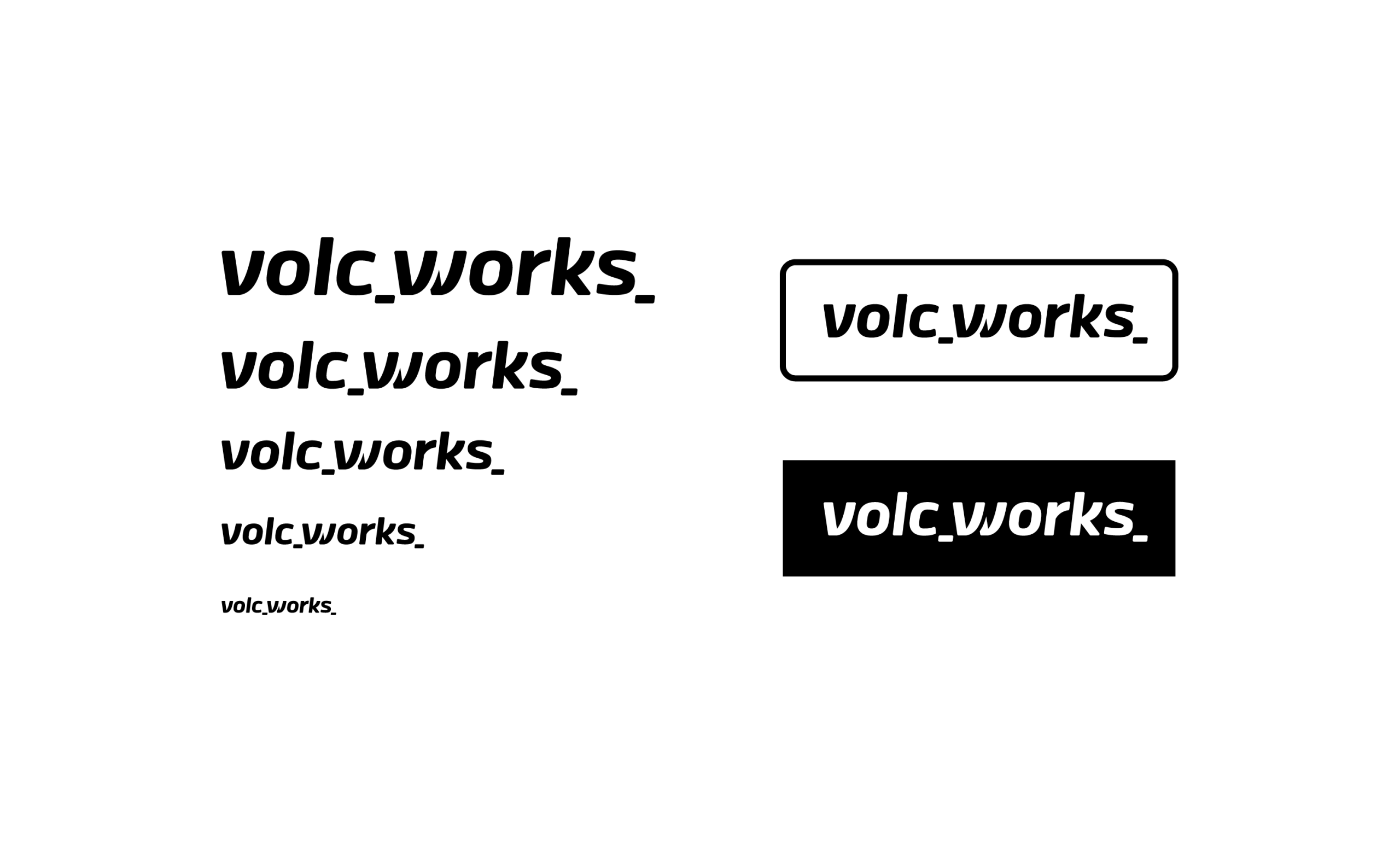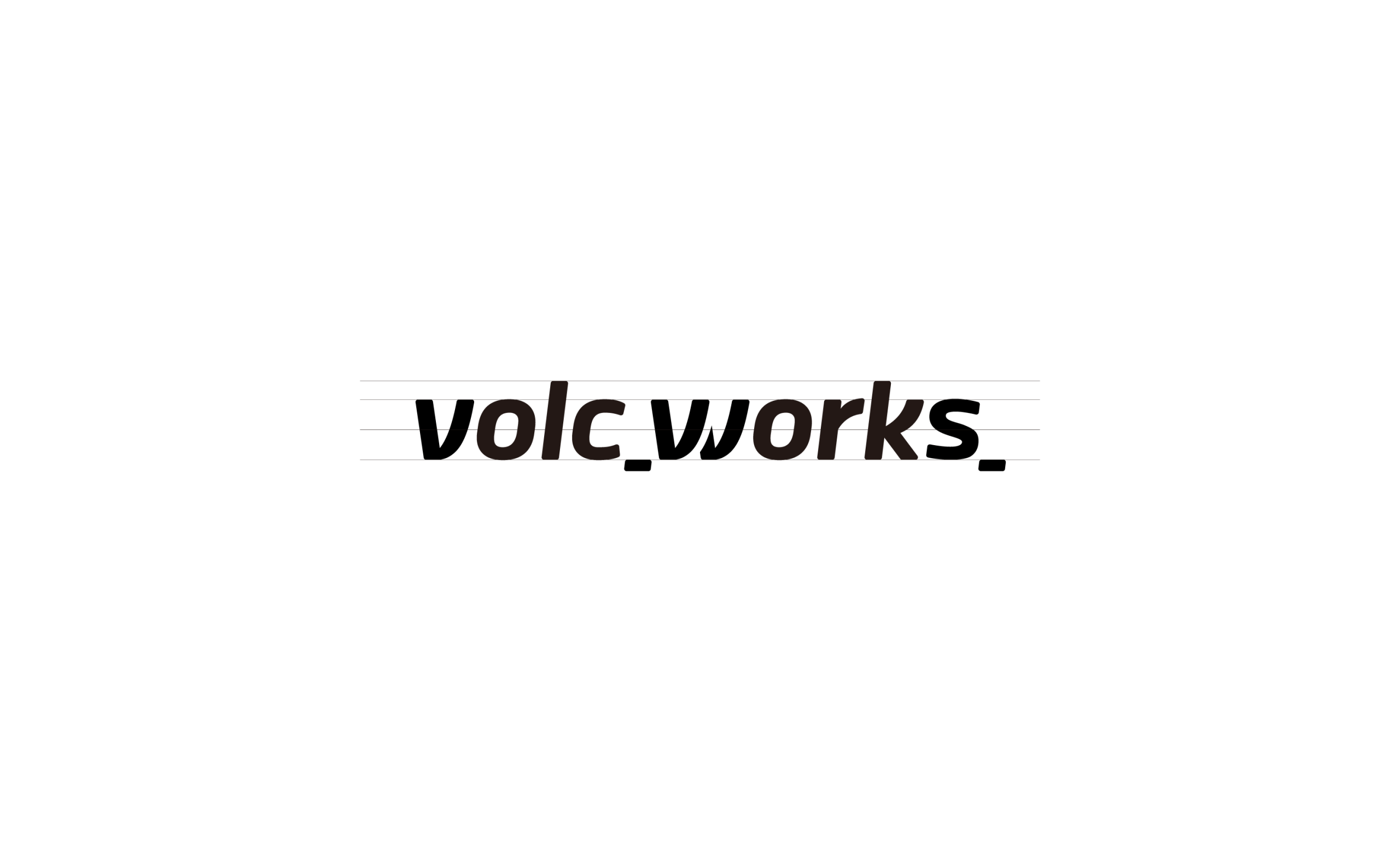 「余韻」と「期待感」を与えるアンダースコア(スネークケース) 今回のロゴマークは英文をベースとした「シンボルロゴタイプ」。volcとworksの後ろに入れた“_”は、文法的にはコマンドラインやコード記述の末尾を連想させるとともに、“これから何かが始まる”というアクティブな余韻を感じさせ、未来志向・継続性といった今後の成長や変化を表現している。テック系ベンチャーやデジタルネイティブなブランドで使われることが多く、先進性や拡張性を感じさせてくれる。また、wのみ切れ目が入っており「引っかかり」となるデザインアクセントとした。
